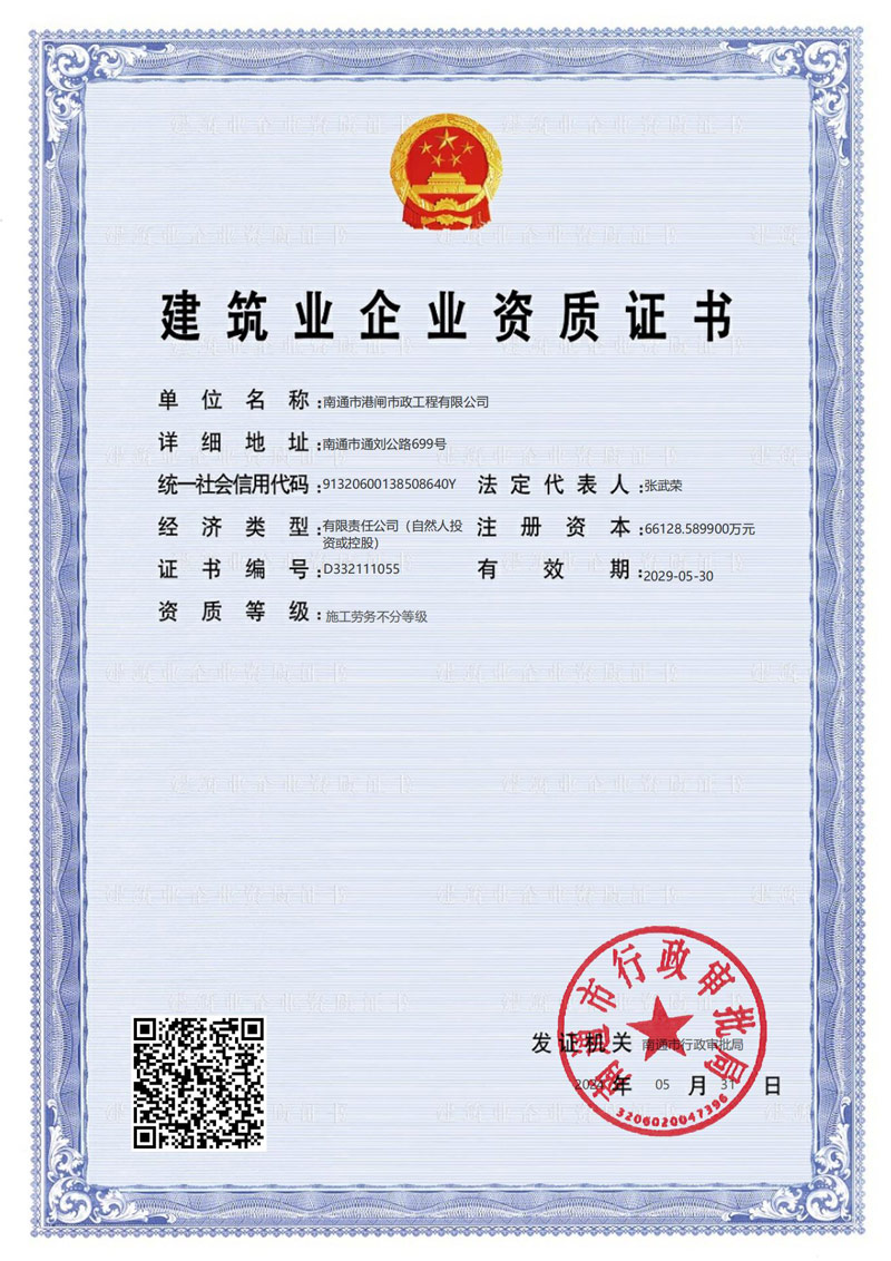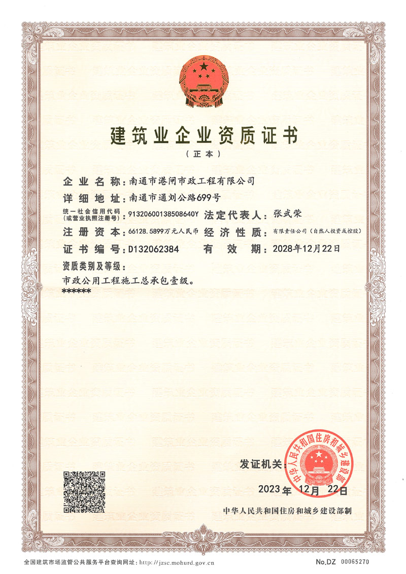 建筑業(yè)企業(yè)資質(zhì)證書(市政公用工程施工總承包壹級(jí))